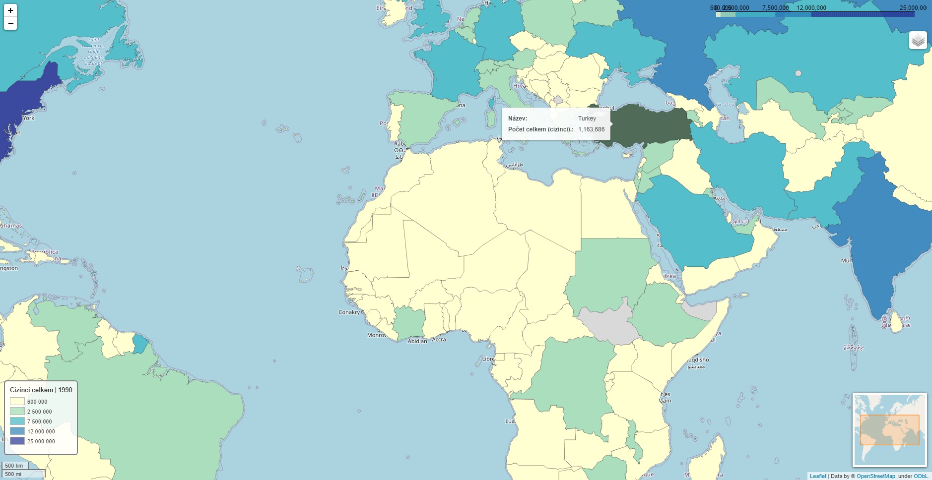 Tato mapa zobrazuje celkový počet cizinců v dané zemi (státu). | ODKAZ NA MAPU ZDE