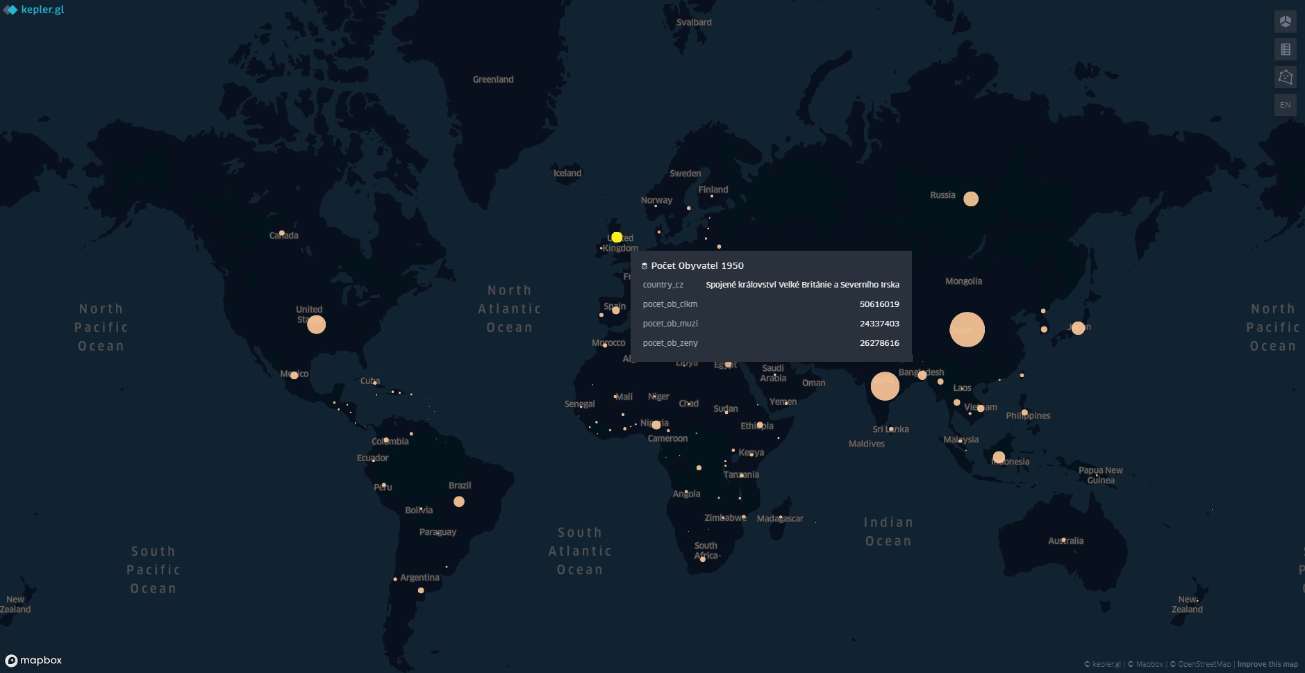 Tato mapa zobrazuje změny počtu obyvatel v čase (1950–2019). | ODKAZ NA MAPU ZDE